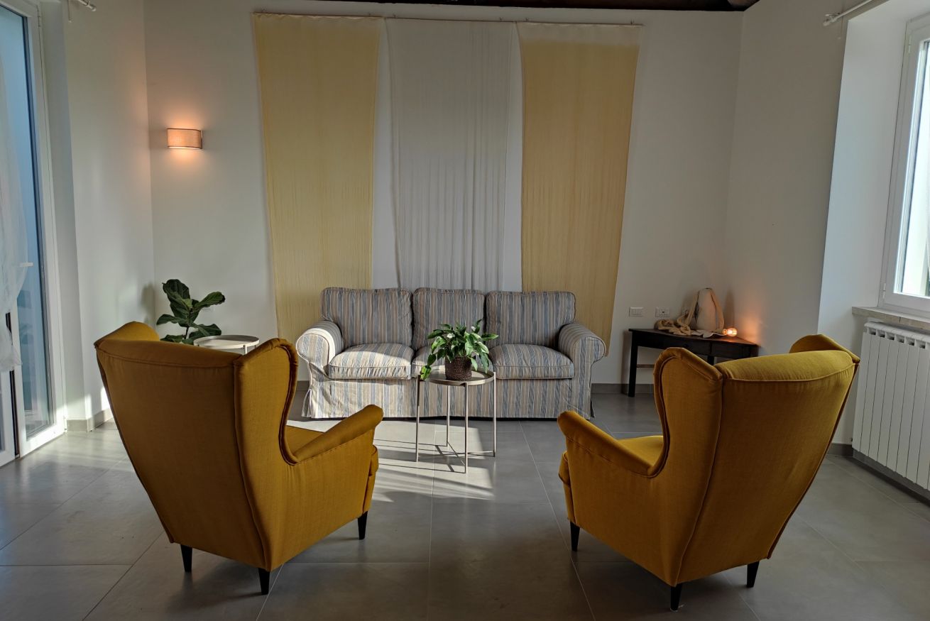 - 1 soggiorno con tavolo da pranzo per 8 persone, un comodo divano e due poltrone;